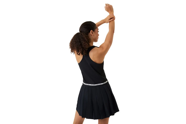 De Ace Dress is een functionele en stijlvolle tennisjurk gemaakt van gerecycled polyester. Het lijfje is grotendeels uitgevoerd in high-performance piqu?materiaal en het plooirokje in geweven 4-weg stretchmateriaal. Dit korte regular-fit model heeft een racerback voor optimale bewegingsvrijheid en is afgewerkt met een elastisch streepdetail aan de achterkant van de taille en het kenmerkende B-logo aan de voorkant. Het model is 173 cm lang en draagt maat S.