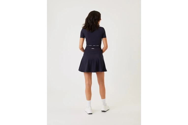 De perfecte stijlvolle korte tennisrok voor al je wedstrijden in zacht 4-weg stretchmateriaal van gerecyclede polyamide en polyester.