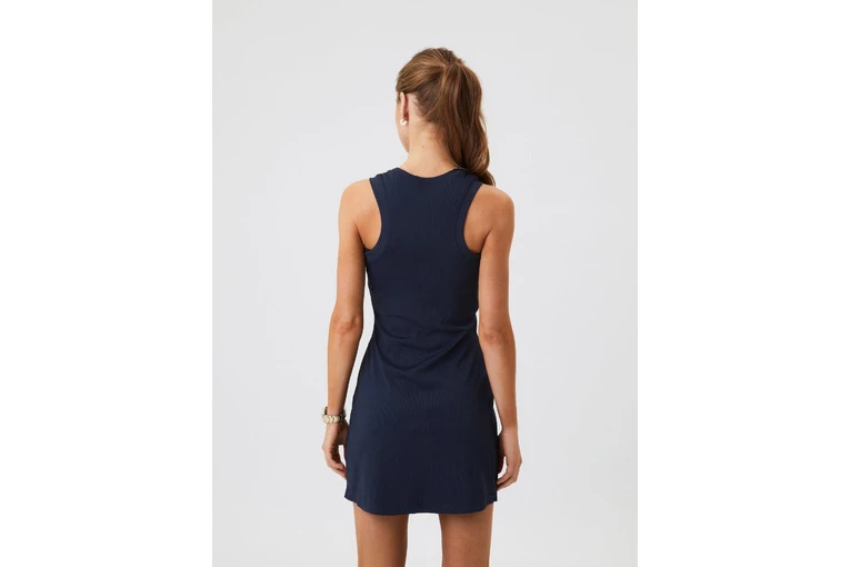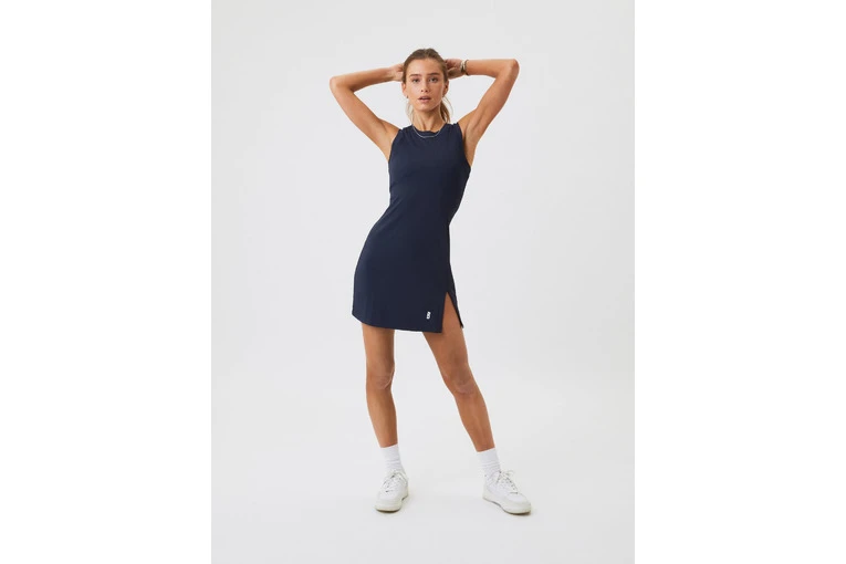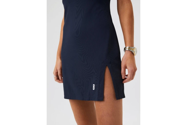 De Bj?rn Borg Ace Rib Dress is een minimalistische tennisjurk in een zachte ribstof van gerecycled polyamide en rekbaar elastaan. De jurk heeft een slanke pasvorm en een korte lengte, een ronde hals, een licht racerback-design, een split aan de linkerkant voor extra bewegingsvrijheid en een iconisch B-logo onderaan. Het model is 173 cm lang en draagt maat S.