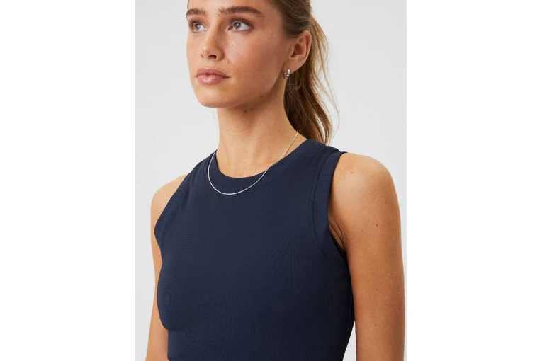 Een tennisjurkje van topkwaliteit in een nette, sportieve stijl. Het heeft een slanke pasvorm, is elastisch en gemaakt van gerecycled zacht ribmateriaal.