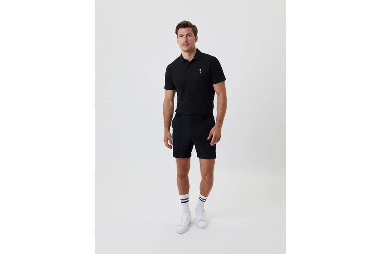 De Ace 7? Shorts is een korte, retro-ge?nspireerde tennisshort gemaakt van geweven 4-weg stretchmateriaal op basis van gerecyclede polyamide. Dit regular-fit model is 18 cm lang en aan de voorkant gestyled met siernaden. De tailleband is elastisch voor extra ondersteuning en sluit met een drukknoop en een rits. De zijzakken zijn ruim genoeg voor een tennisbal tijdens de match. Het model is 188 cm lang en draagt maat M.