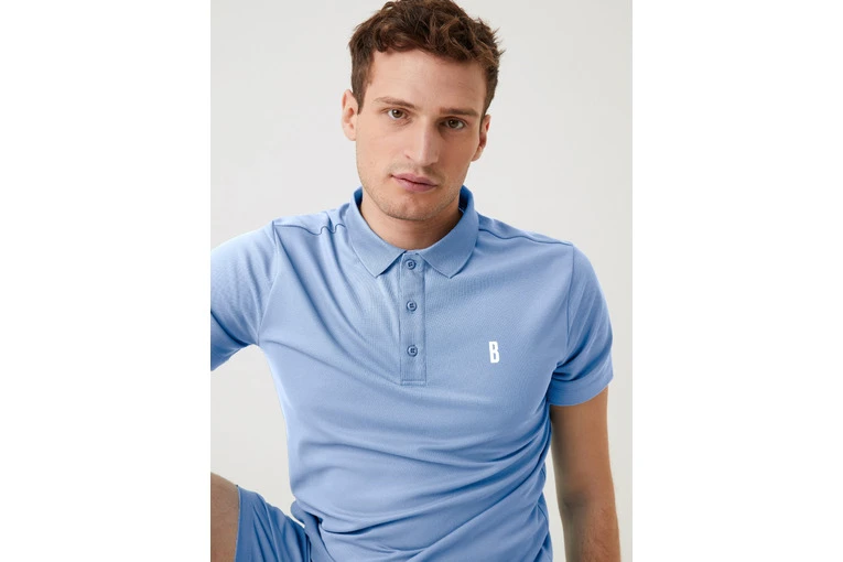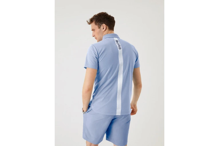 De Ace Polo is stijlvolle sportpolo met drie knopen uitgevoerd in high-performance piquemateriaal van zacht gerecycled polyester. Dit regular-fit langere model met geribde kraag is langer en een langere achterzoom, en is dus perfect voor oefeningen boven het hoofd en extra bedekking. De zijsplitten bieden optimale bewegingsvrijheid, terwijl de gestreepte band aan de nek zorgt voor de finishing touch. Het model is 188 cm lang en draagt maat M.