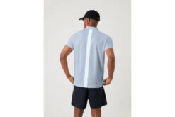 De Ace Polo is stijlvolle sportpolo met drie knopen uitgevoerd in high-performance piqu?materiaal van zacht gerecycled polyester. Dit regular-fit langere model met geribde kraag is langer en een langere achterzoom, en is dus perfect voor oefeningen boven het hoofd en extra bedekking. De zijsplitten bieden optimale bewegingsvrijheid, terwijl de gestreepte band aan de nek zorgt voor de finishing touch. Het model is 188 cm lang en draagt maat M.