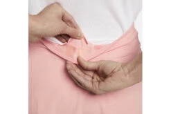 De tailleband is ontworpen om de natuurlijke vormen van je lichaam te volgen, zodat het materiaal niet aan je huid blijft plakken wanneer je beweegt. Een steekzak aan de achterkant kan gebruikt worden om je essentials veilig op te bergen.