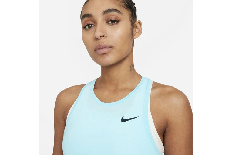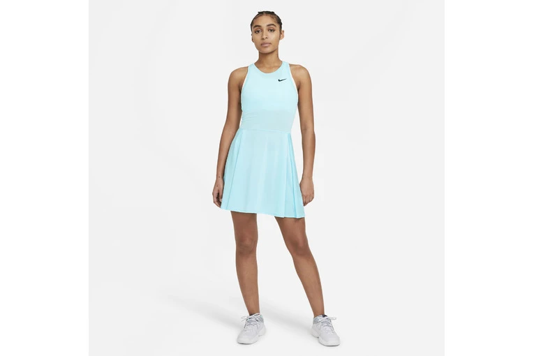 Verover de baan in de NikeCourt Advantage jurk. Dankzij de plooien aan de voorkant kun je zonder beperkingen rennen en glijden. Het lichte, elastische materiaal voert zweet af zodat je droog blijft wanneer het spannend wordt.