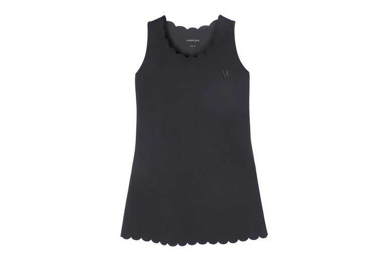 This no-sleeve Helene dress, with laser-cut curves is a joy to wear. It has a loose fit and is made out of polyamide dri fit.